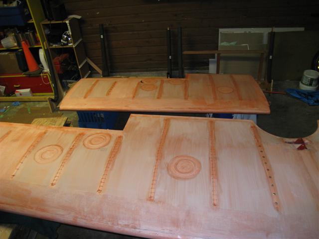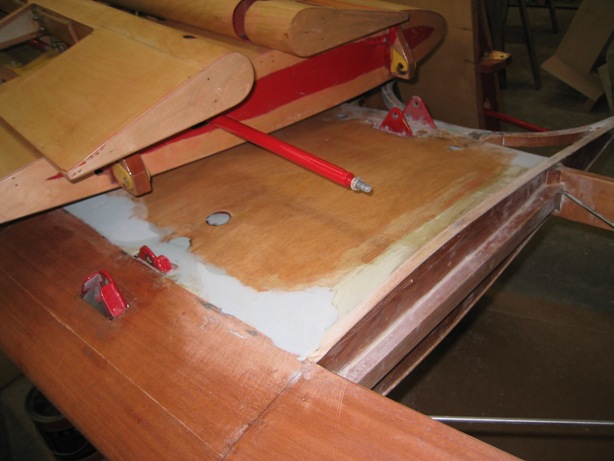 | Top of upper wing center section with the hole I'd cut out to remove